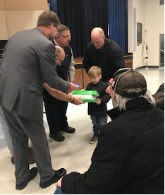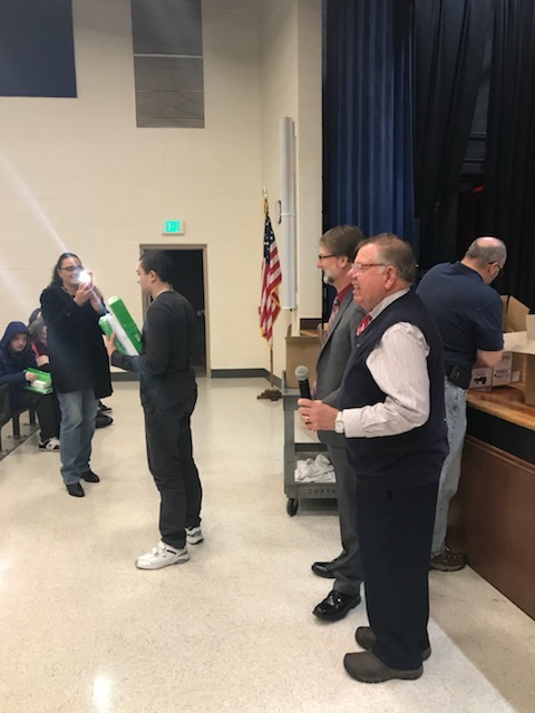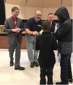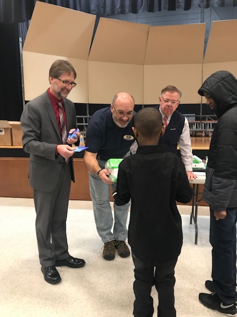 Western Kenosha Kiwanis officers, Chuck Gierl, Phil Wade and John Collins presented iPads to 20 Kenosha area special needs children at a recent ceremony at Lance Junior High School. This makes a total of 50 iPads Western Kiwanis has presented to local kids. Thanks to Jenny Schmidt and other KUSD staff for coordinating this event (January 26, 2020).